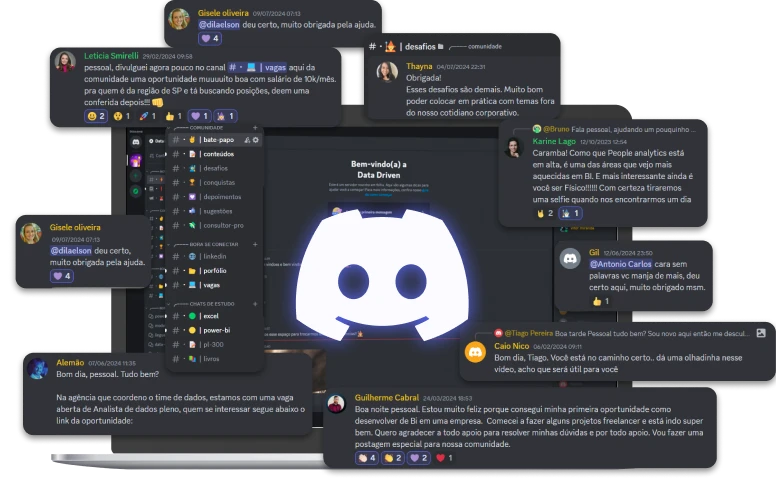 E não é um grupo no WhatsApp que você vai querer silenciar. É um grupo no Discord, organizado por canais, onde o networking acontece de verdade: